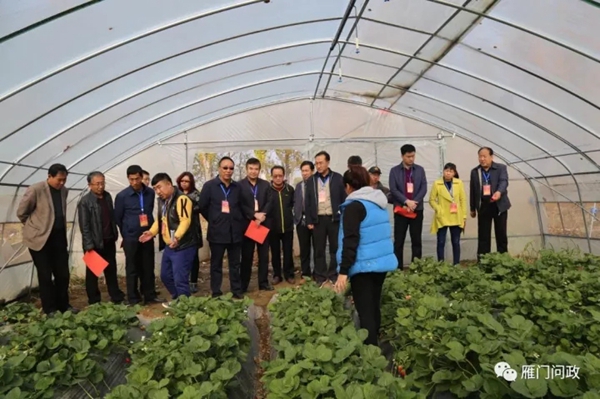 图为视察组在峪口乡胡家沟村景荣专业合作社视察