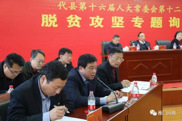 “这次专题询问的会议开的很好、很成功。这种‘面对面’的监督方式,彰显了人大监督的刚性,这既体现了人大服务发展大局,回应人民关切的使命担当,也是对政府相关部门脱贫攻坚工作的检验检阅、督促推动。会后,县人大常委会要认真总结这次专题询问会取得的经验和存在的问题,不断完善专题询问的系统做法,努力拓展专题询问的范围,不断增强专题询问应有的实效。今后,我们要将专题询问常态化,并在此基础上推进质询和特定专题调查等监督手段方式。下一步我们要有计划地选择城市建设、文化立法保护、食品安全、教育医疗、人大决定决议、代表意见、建议落实等专项问题,组织更加专注、更有特点的专题询问,有力地回答群众关注的焦点、热点,更好地促进代县经济社会民生的全面发展”。县人大常委会主任贾明亮在专题询问会议结束时如此给予总结。