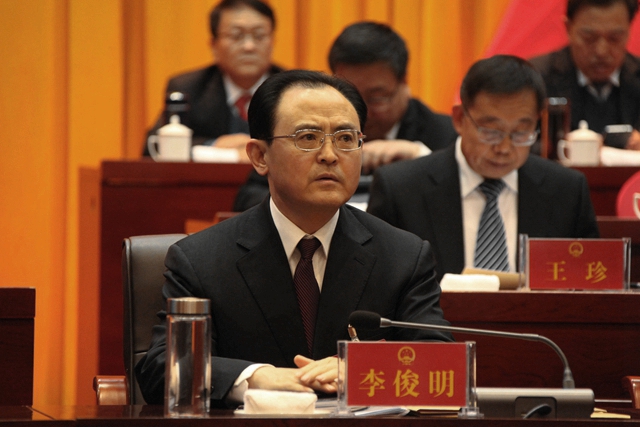 大会执行主席李俊明在主席台前排就坐