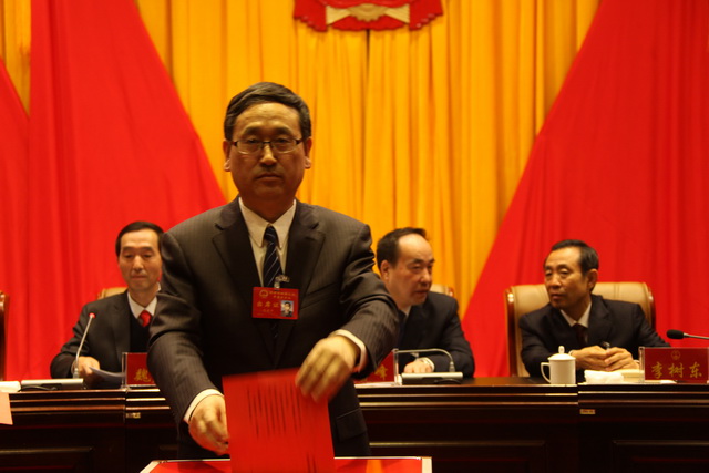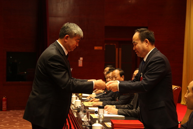 市人大常委会主任贾雪峰向通过任命人员颁发任命书
